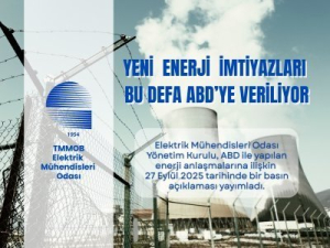 Elektrik Mühendisleri Odası Yönetim Kurulu, Cumhurbaşkanı Erdoğan’ın ABD ziyareti sırasında enerji alanında yapılan anlaşmalara ilişkin 27 Eylül 2025 Cumartesi günü bir basın açıklaması yayımladı. Açıklamada, nükleer ve doğalgaz başta olmak üzere ABD ile mutabakat zaptları imzalandığı, BOTAŞ’ın ABD’li şirketlerle uzun vadeli LNG tedarik anlaşmaları yaptığı belirtilmekte, özellikle ABD ile imzalanan sivil nükleer işbirliği mutabakatına dikkat çekilerek, Akkuyu örneğine olduğu gibi...