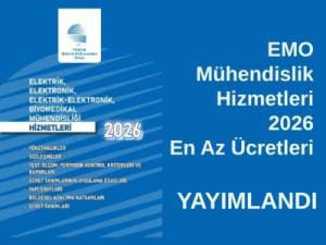 Elektrik Mühendisleri Odası Yönetim Kurulu, 2026 yılında işletme sorumluluğu, trafo, dış tesis projeleri, test ve ölçümler gibi mühendislik hizmetleri için uygulanacak en az ücretlerin artışını karara bağlayarak, EMO alanındaki mühendislik hizmetlerinde temel alınacak yönetmelikler, sözleşmeler, rapor kriter ve formları, en az ücretlerin uygulama esaslarının da yer aldığı kitapçığı elektronik olarak yayımlamıştır.